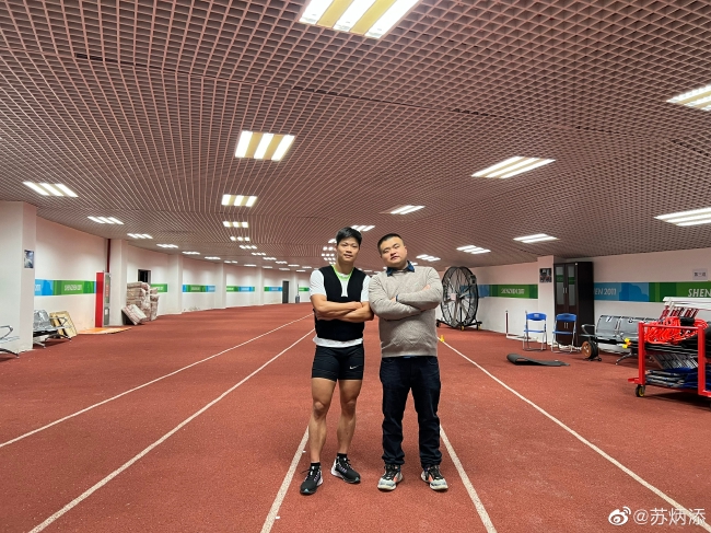 2月1日,大年初一当天,苏炳添在个人微博中晒出自己的训练照片,并给大家拜年。