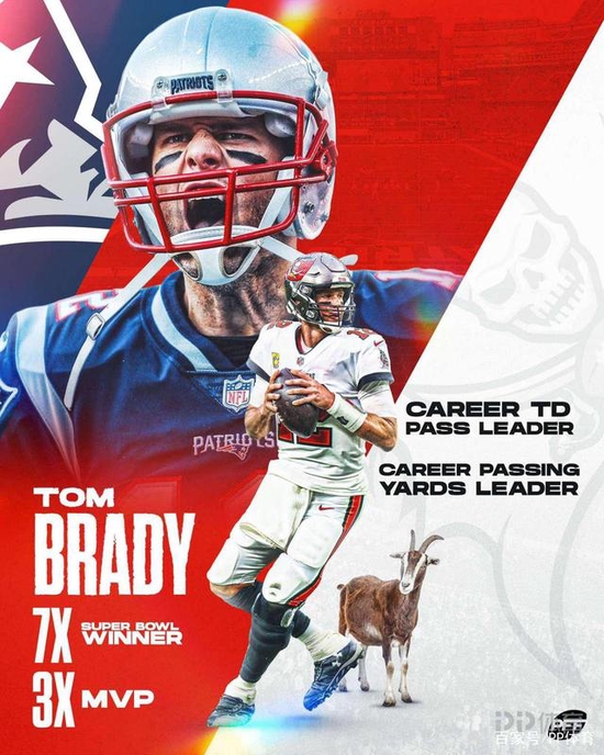 44岁的布雷迪被公认为是NFL有史以来最伟大的球员,他拥有多项NFL职业生涯纪录,包括赢得比赛数量最多、最多达阵传球及最多传球码数等。布雷迪为新英格兰爱国者队效力20个赛季,期间夺下6座超级碗冠军。之后,布雷迪于2020年加入坦帕湾海盗队,并在去年赢得个人第7座超级碗冠军,成为NFL史上唯一七冠王。