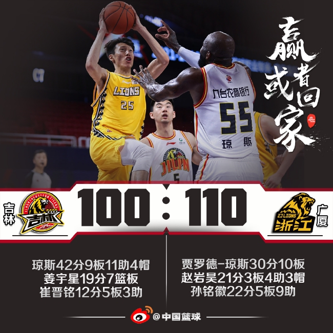 吉林队:琼斯42分9板11助攻,姜宇星19分7板,崔晋铭12分5板,姜伟泽9分5板;